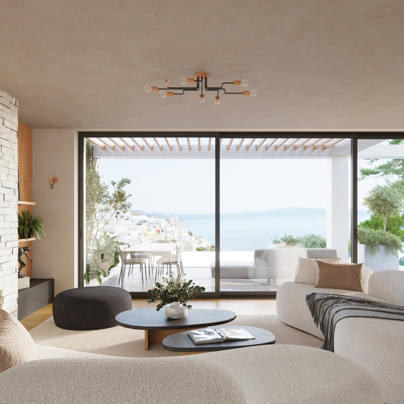 Gracias a la combinación de metal negro y madera natural, Timbo añade carácter sin saturar el ambiente. Las bombillas E27 intercambiables permiten ajustar la luminosidad y la temperatura de color para crear atmósferas cálidas en reuniones o una iluminación más nítida para tareas. Su distribución en seis brazos garantiza claridad uniforme en salones, recibidores y dormitorios, convirtiéndose en el centro visual de la estancia mientras ilumina con eficiencia.