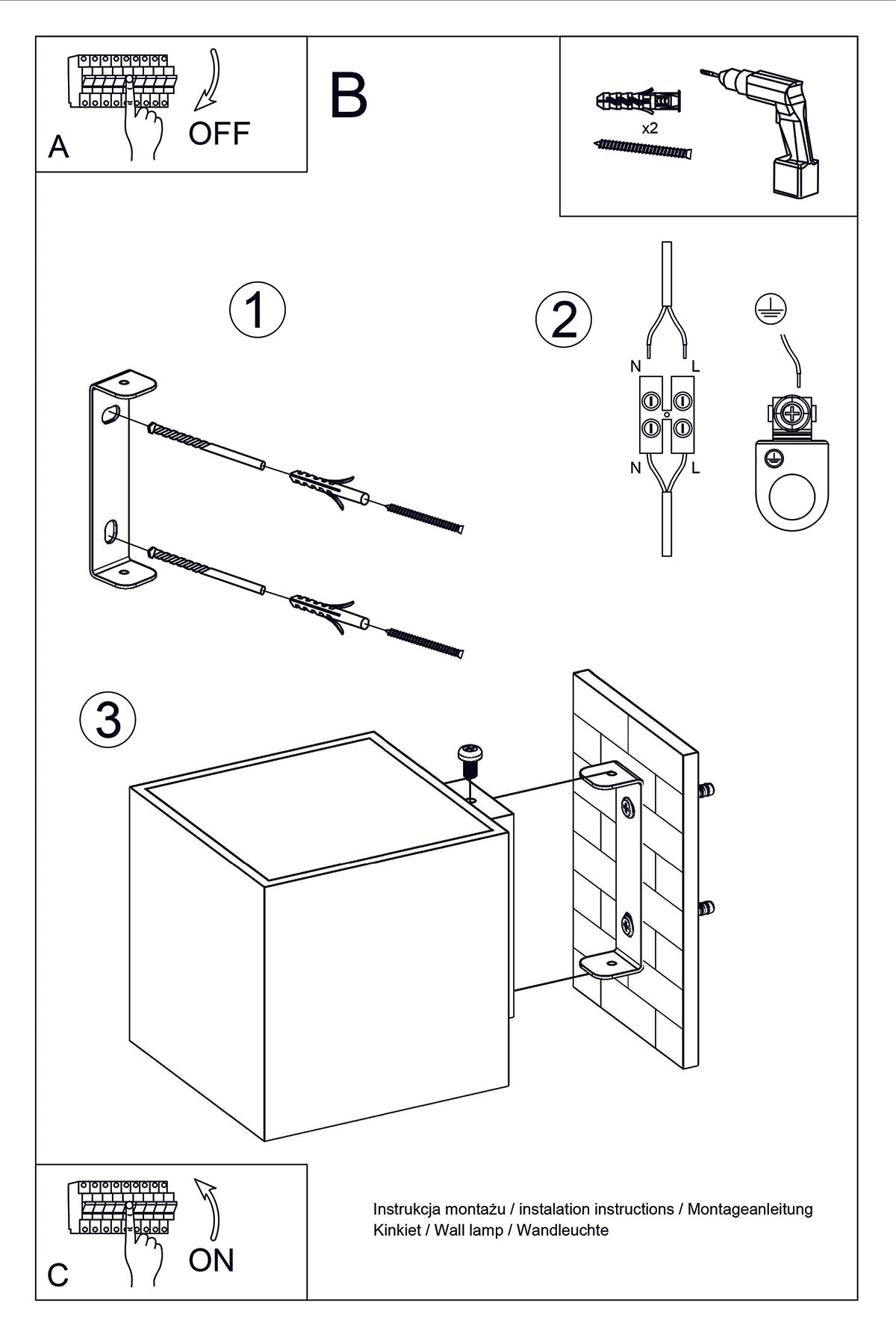 • Especificaciones eléctricas: G9, 1 LED máx. 8 W, ~230 V, 50 Hz; iluminación dirigida hacia arriba y abajo.